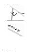 8. Kencangkan kunci pada sasis menggunakan sekrup yang tersedia (1). Masukkan ujung kabel pengaman
