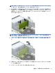 7. 電源ケーブル(1)およびデータ ケーブル(2)をオプティカル ドライブの背面から取り外し、