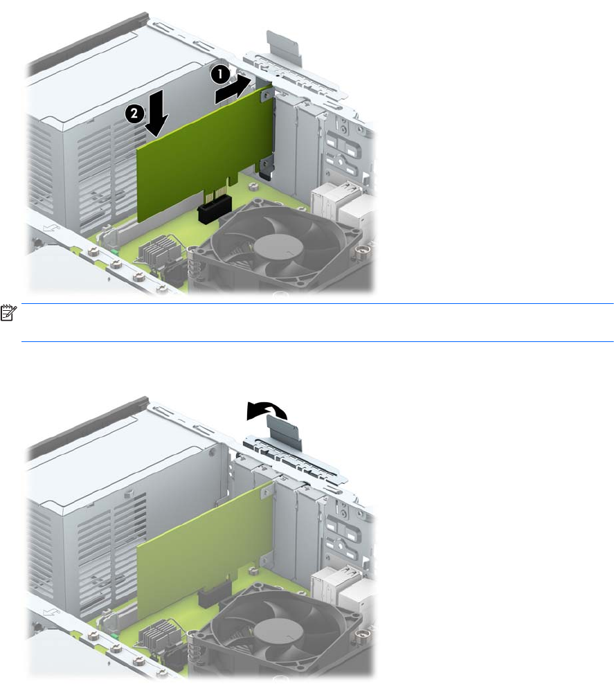 13. Чтобы зафиксировать плату расширения, поверните защелку заглушки, вернув ее на место.