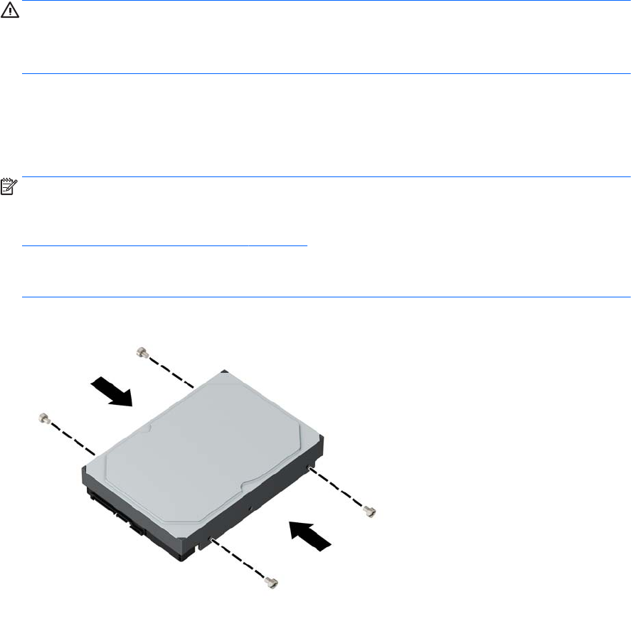 7. Вверните четыре серебристых крепежных винта 6-32 в жесткий диск (по два с каждой стороны).