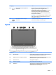 (1) Intelligenskártya-olvasó Opcionális intelligens kártyák behelyezésére szolgál.