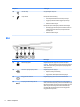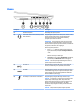 (4) Port pengisian (dialiri daya) USB 3.0 Menghubungkan perangkat USB opsional, seperti keyboard,