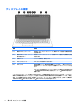 3 ページの「コンピューターの概要」および21 ページの「キーボード、タッチ ジェスチャ、