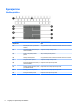 (1) Reža za varnostni kabel Omogoča namestitev dodatnega varnostnega kabla na računalnik.