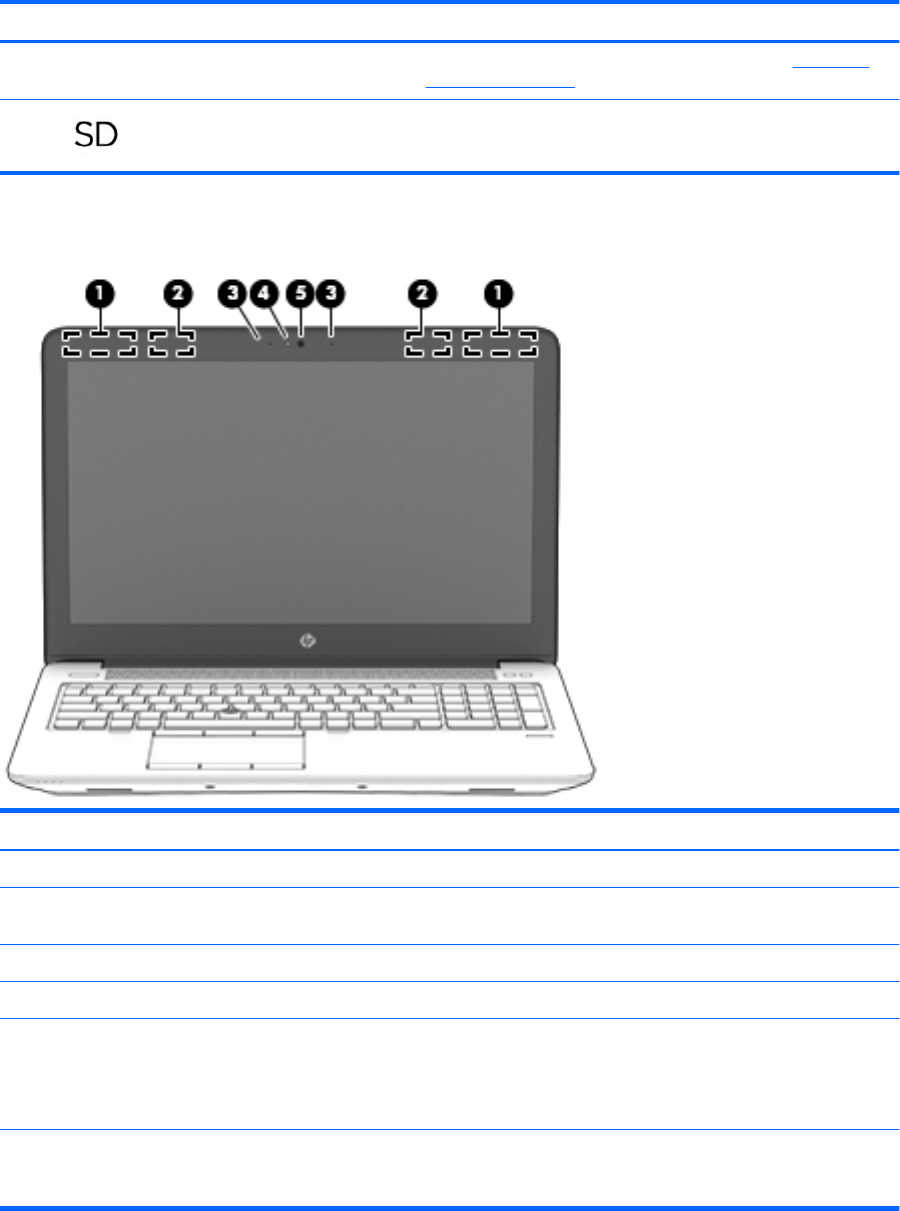 (1) WLAN-antenner (2)* Skickar och tar emot trådlösa signaler över lokala trådlösa nätverk (WLAN).
