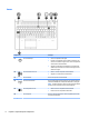 (4) Zona do TouchPad Lê os gestos do seu dedo para mover o ponteiro ou ativar itens