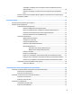 4 Verwenden der Tastatur, Berührungsbewegungen und Zeigegeräte ................................................................. 24 Verwenden der Zeigegeräte ................................................................................................................................ 24 Festlegen der Einstellungen für Zeigegeräte ................................................................................... 24 Verwenden des Pointing Stick ..............................................................