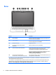 (5) Bouton gauche du pavé tactile Fonctionne comme le bouton gauche d'une souris externe.