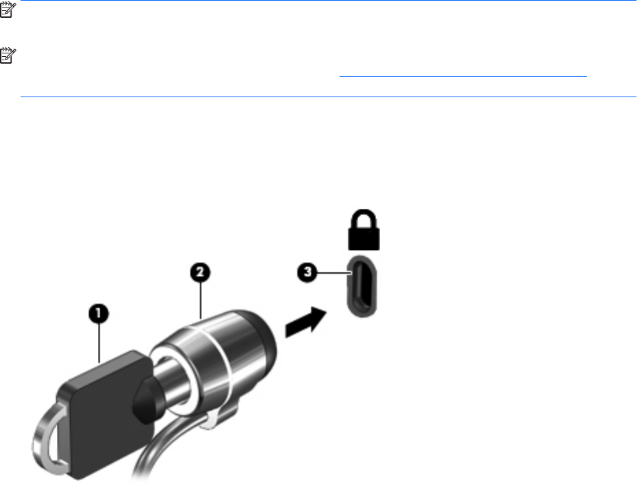 3. Εισαγάγετε την κλειδαριά καλωδίου στην υποδοχή καλωδίου ασφαλείας στον υπολογιστή (3) και, στη
