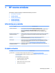 Produkta diagnostika Tēma Windows diagnostikas rīki Atrašanās vieta UEFI diagnostikas utilīta ir iepriekš instalēta zināmās Windows darbstacijās. Lai iegūtu papildu informāciju, skatiet darbstacijai atbilstošo publikāciju Maintenance and Service Guide (Apkopes un servisa rokasgrāmata) tīmekļa lapā http://www.hp.com/ support/workstation_manuals.