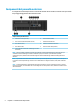 Componenti del pannello anteriore La configurazione dell'unità può variare a seconda del modello. Alcuni modelli sono dotati di un coperchietto che protegge l'alloggiamento dell'unità ottica sottile. Componenti del pannello anteriore 1 Unità ottica sottile (opzionale) 6 Jack uscita audio (cuffie) 2 Porta di ricarica (alimentata) USB 2.0 (nera) 7 Pulsante di alimentazione 3 Porta USB 2.0 (nera) 8 Indicatore di attività del disco fisso 4 Porte USB 3.