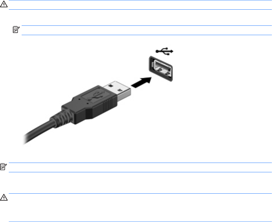 주의: USB 커넥터의 손상을 방지하려면 장치에 연결할 때 무리하게 힘을 주지 마십시오.