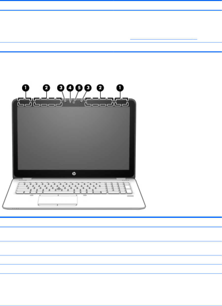 (1) Antenas WLAN* Envían y reciben señales de dispositivos inalámbricos para