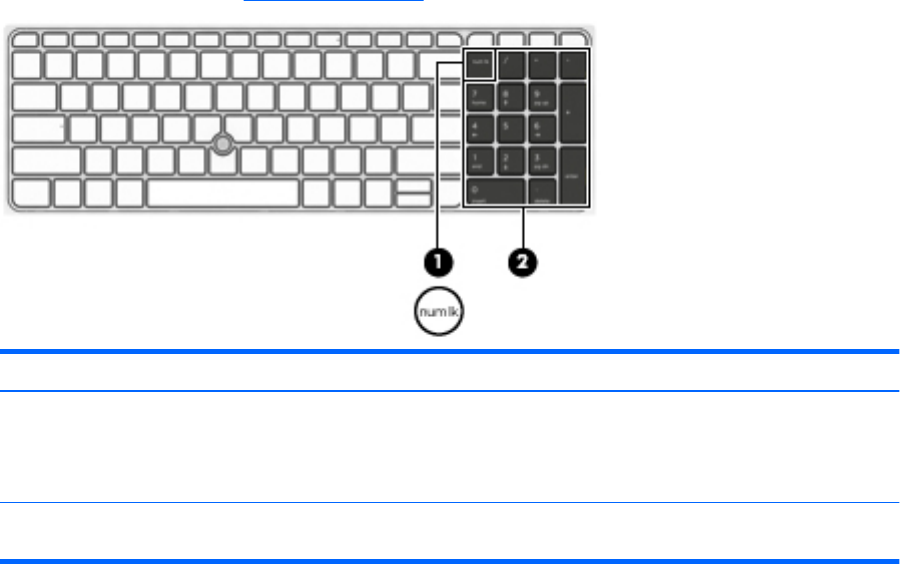 (1) Tecla bloq num Alterna entre las funciones de navegación y numérica del teclado
