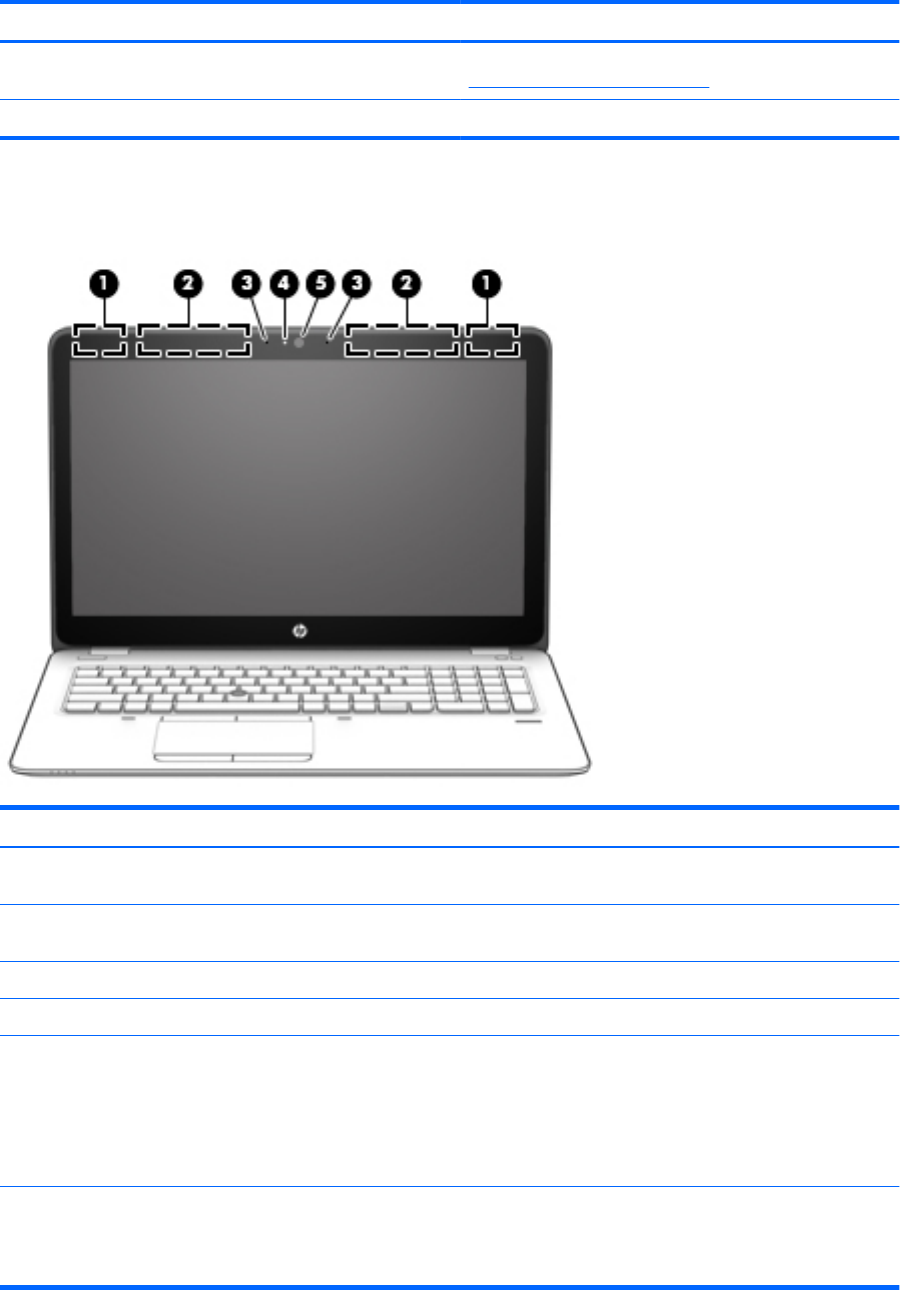 (1) Antene za WLAN* Primaju i šalju bežične signale radi komunikacije s bežičnim lokalnim