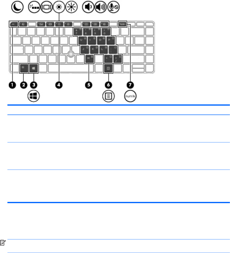(2) tipka fn Uključuje i isključuje ugrađenu numeričku tipkovnicu kada se pritisne u