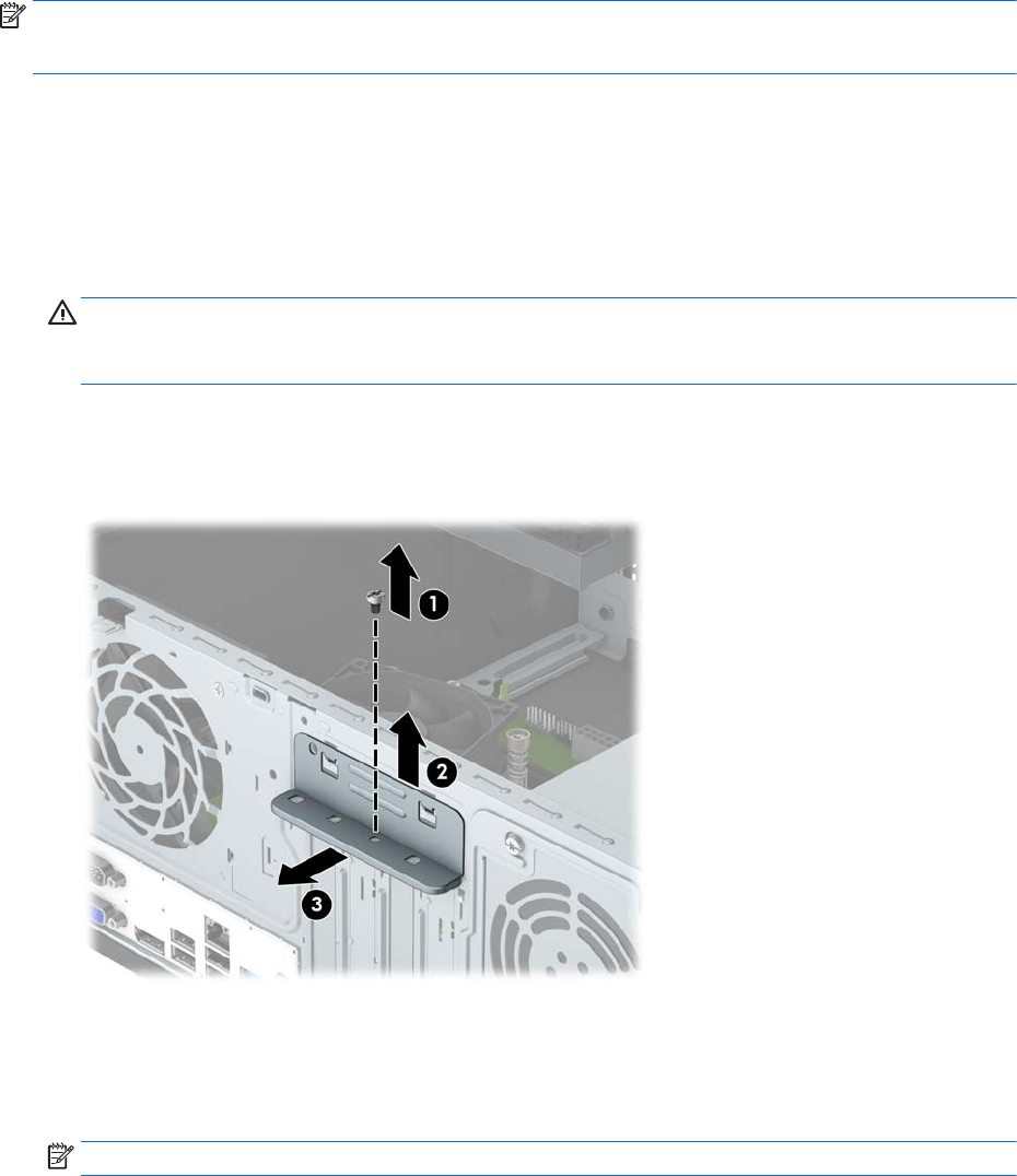 6. Uklonite vijak koji drži zasun kartice za proširenje (1), a potom podignite zasun (2) i povucite ga sa