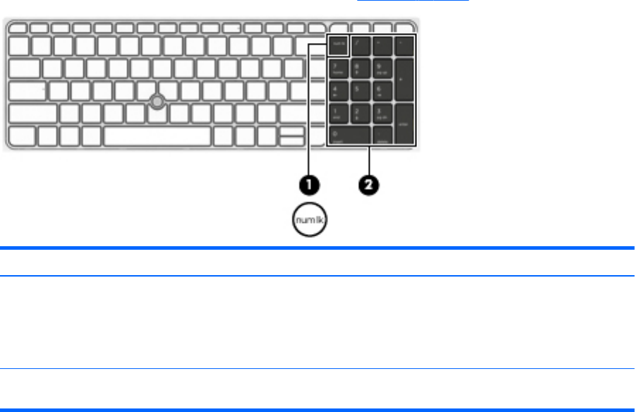 (1) num lk billentyű Lehetővé teszi a beépített számbillentyűzet navigációs és numerikus