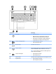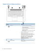 (5) Vänster knapp på styrplattan Fungerar som vänsterknappen på en extern mus.