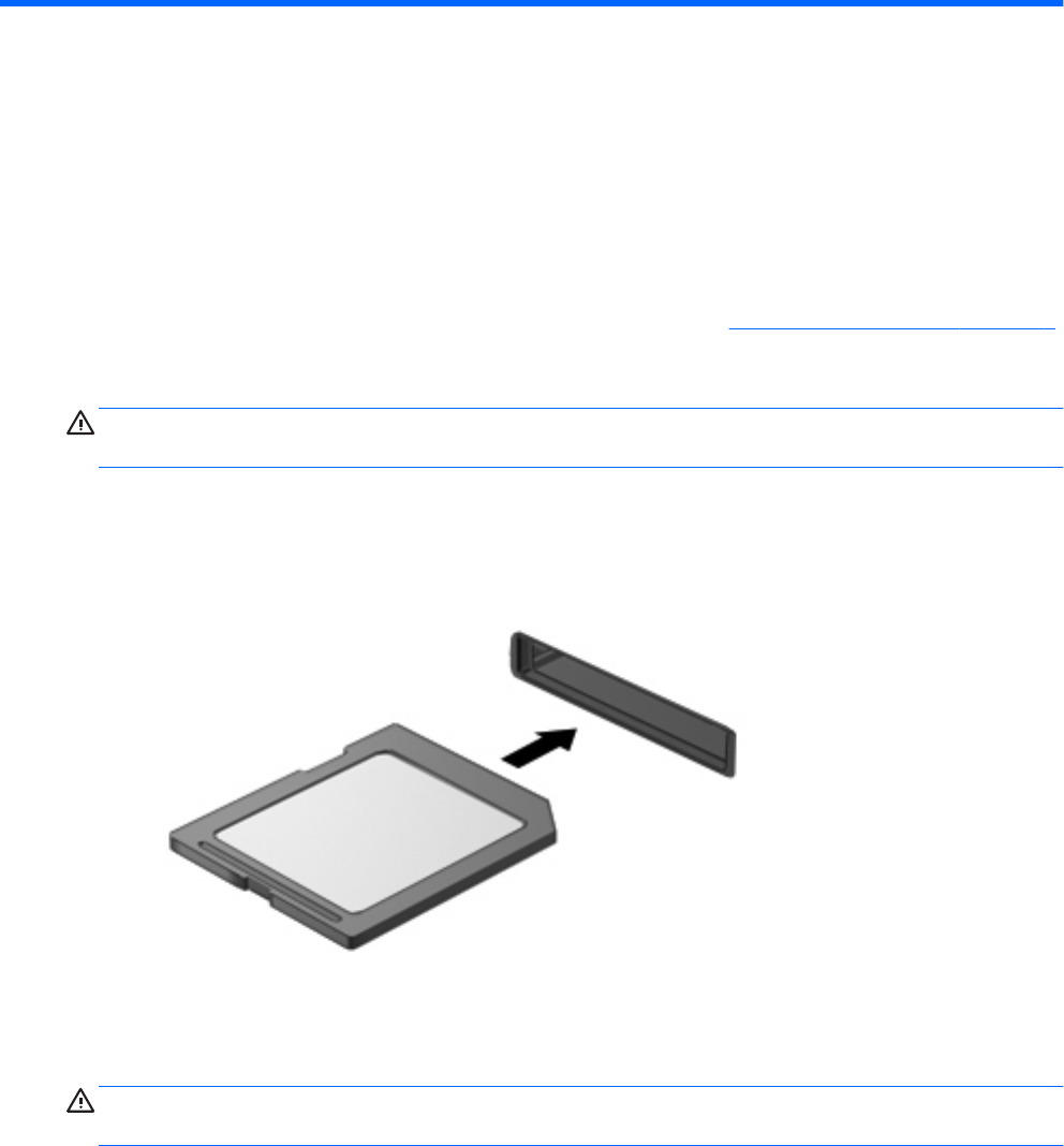 PERHATIAN: Untuk mengurangi risiko kerusakan pada konektor kartu memori, masukkan kartu memori