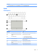 (5) Levi gumb sledilne ploščice Deluje kot levi gumb zunanje miške.