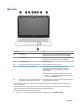 (5) Ліва кнопка сенсорної панелі Виконує функції лівої кнопки зовнішньої миші.