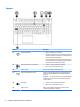 (1) Emplacement pour câble antivol Permet de xer à l'ordinateur un câble antivol en option.