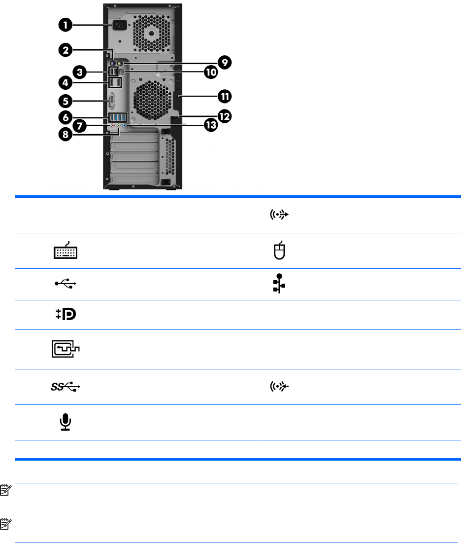 6 USB 3.0 -portit (4) (sininen) 13 Äänitulon liitin (sininen)