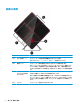 名称 (2) (3) 説明 電源ランプ 無線ランプ ● 点灯:コンピューターの電源がオンになっています ● 点滅:コンピューターがスリープ状態で、省電力状態になっ ています。ディスプレイおよびその他の不要なコンポーネン トの電源はオフになっています ● 消灯:コンピューターの電源がオフになっているか、休止状 態になっています。休止状態は、最小限の電力を使用する省 電力状態です ● 点灯:無線ローカル エリア ネットワーク(無線 LAN)デバイ スや Bluetooth®デバイスなどの内蔵無線デバイスの電源がオ ンになっています ● 消灯:すべての内蔵無線デバイスがオフになっています 注記:製品によっては、すべての無線デバイスがオフになってい る場合に無線ランプがオレンジ色に点灯します (4) オーディオ入力(マイ 別売または市販のコンピューター用ヘッドセットのマイク、ステ ク)コネクタ レオ アレイ マイク、またはモノラル マイクを接続します (5) オーディオ出力(ヘッ ドフォン)/オーディ オ入力(マイク)コン ボ コネクタ 別売または市販の別途電力が供給されているステ