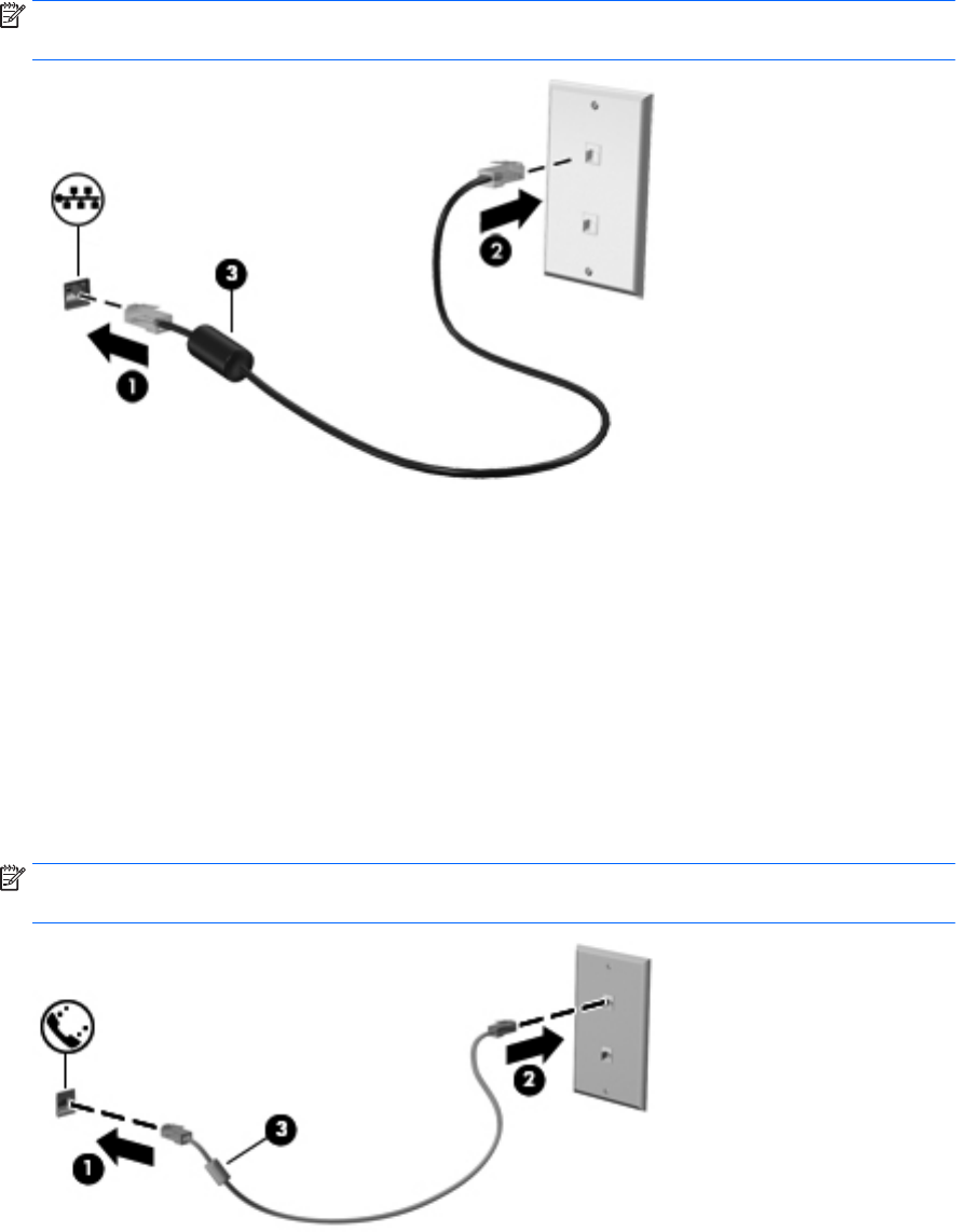 2. Prijunkite modemo laidą prie RJ-11 telefono lizdo sienoje (2).