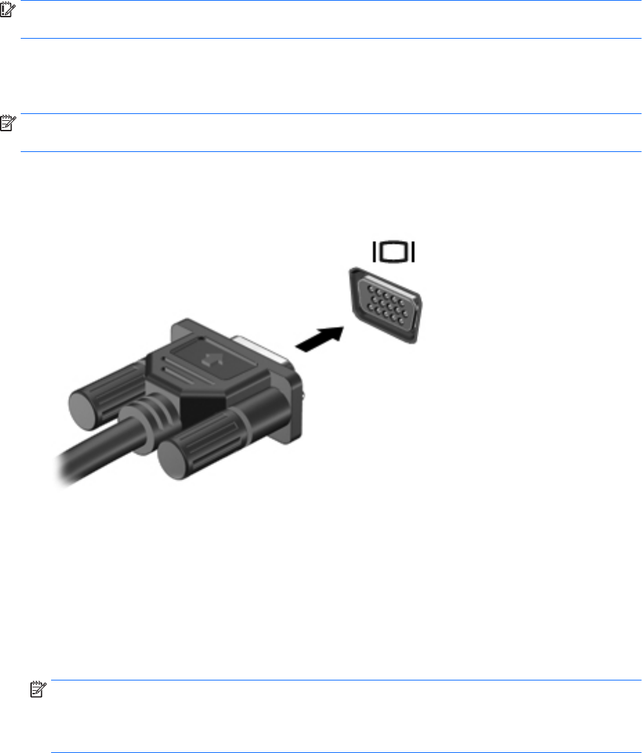 Norėdami matyti kompiuterio ekrano vaizdą išoriniame VGA monitoriuje arba perteikti vaizdą projektoriumi,