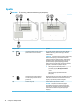 (5) Belaidžio ryšio lemputė Dega: integruotasis belaidis įrenginys, pvz., belaidžio vietinio