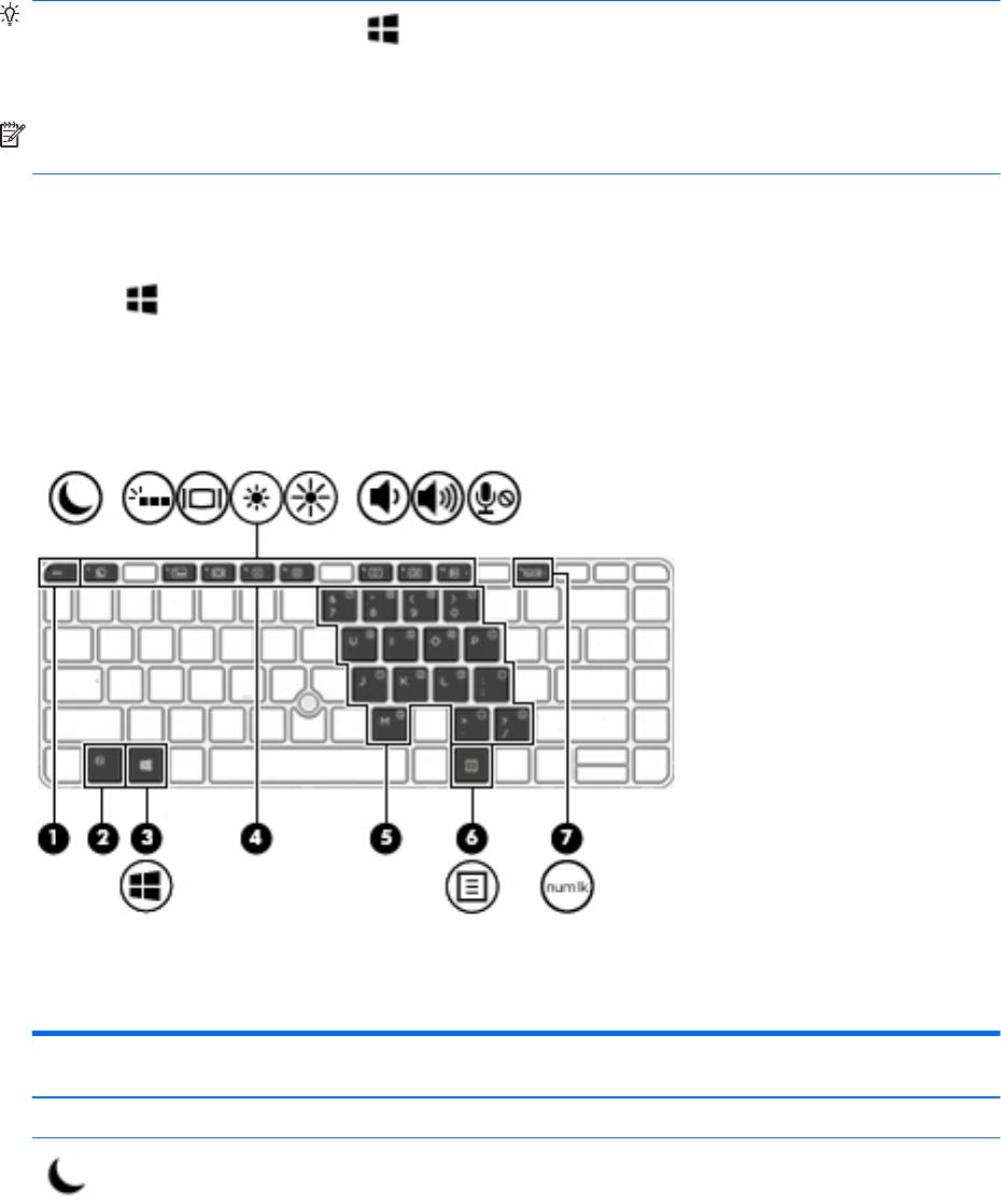 Una tecla de acceso rápido es una combinación de la tecla fn (2) y la tecla esc (1) o una de las teclas de