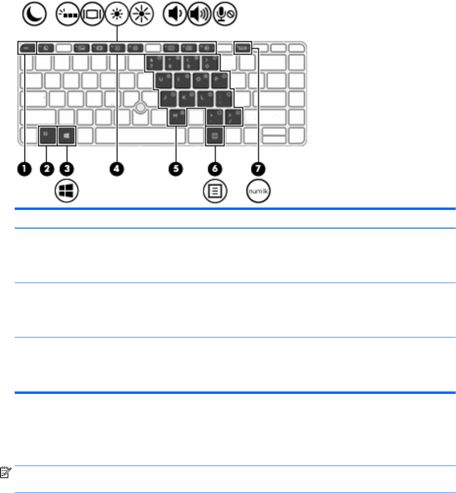 (2) Tecla fn Activa y desactiva el teclado numérico incorporado al presionarla