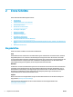 Druckauflösung Eine Liste mit den unterstützten Druckauflösungen finden Sie auf der Website für Produktsupport unter www.support.hp.com. Weitere Informationen zum Drucken mit maximaler Auflösung finden Sie unter Drucken mit maximaler Auflösung auf Seite 28. Akustikinformationen Wenn Sie Zugang zum Internet haben, können Sie von der HP Website Informationen zur Akustik abrufen.