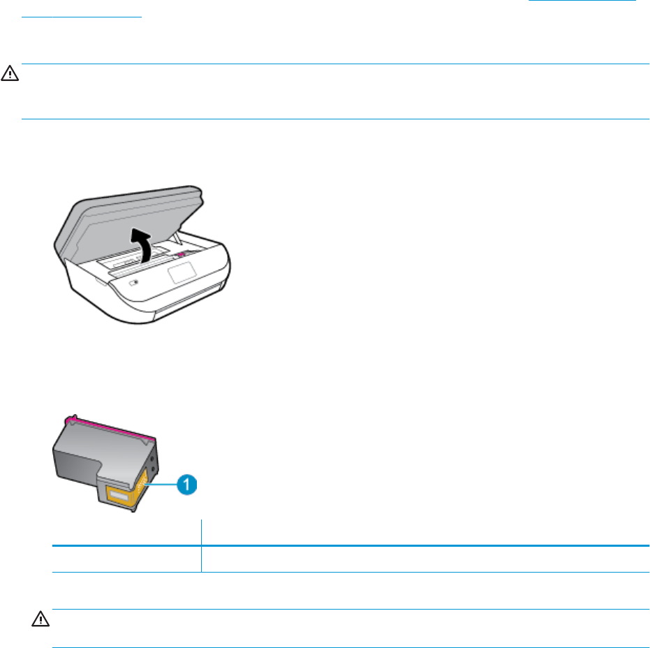 6. Ở bên trong máy in, xác định vị trí các điểm tiếp điện trong hộp mực in. Các điểm tiếp điện giống