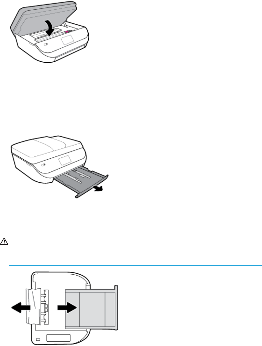 c. Kiểm tra khoảng trống trong máy in nơi để khay nạp. Nếu có bất kỳ phần giấy bị kẹt nào,