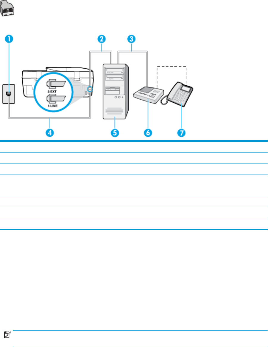 Để cài đặt máy in trên cùng đường dây điện thoại khi máy tính có hai cổng điện thoại
