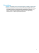 Tabel 8-6 Højttaleren, symptomer og løsninger (fortsat) Symptom Mulig løsning Sørg for, at du har tilsluttet strømtilførte højttalere, og at de er tændt. Sluk for computeren. Derefter kobles højttalerne fra og tilsluttes igen. Sørg for, at højttalerne er forbundet til et lydstik, og ikke et mikrofon- eller hovedtelefonstik. Tryk på slumreknappen (kun udvalgte produkter) eller esc for at fortsætte fra slumretilstand. Frakobl hovedtelefoner, hvis de er tilsluttet computeren (eller højttaleranlægget).