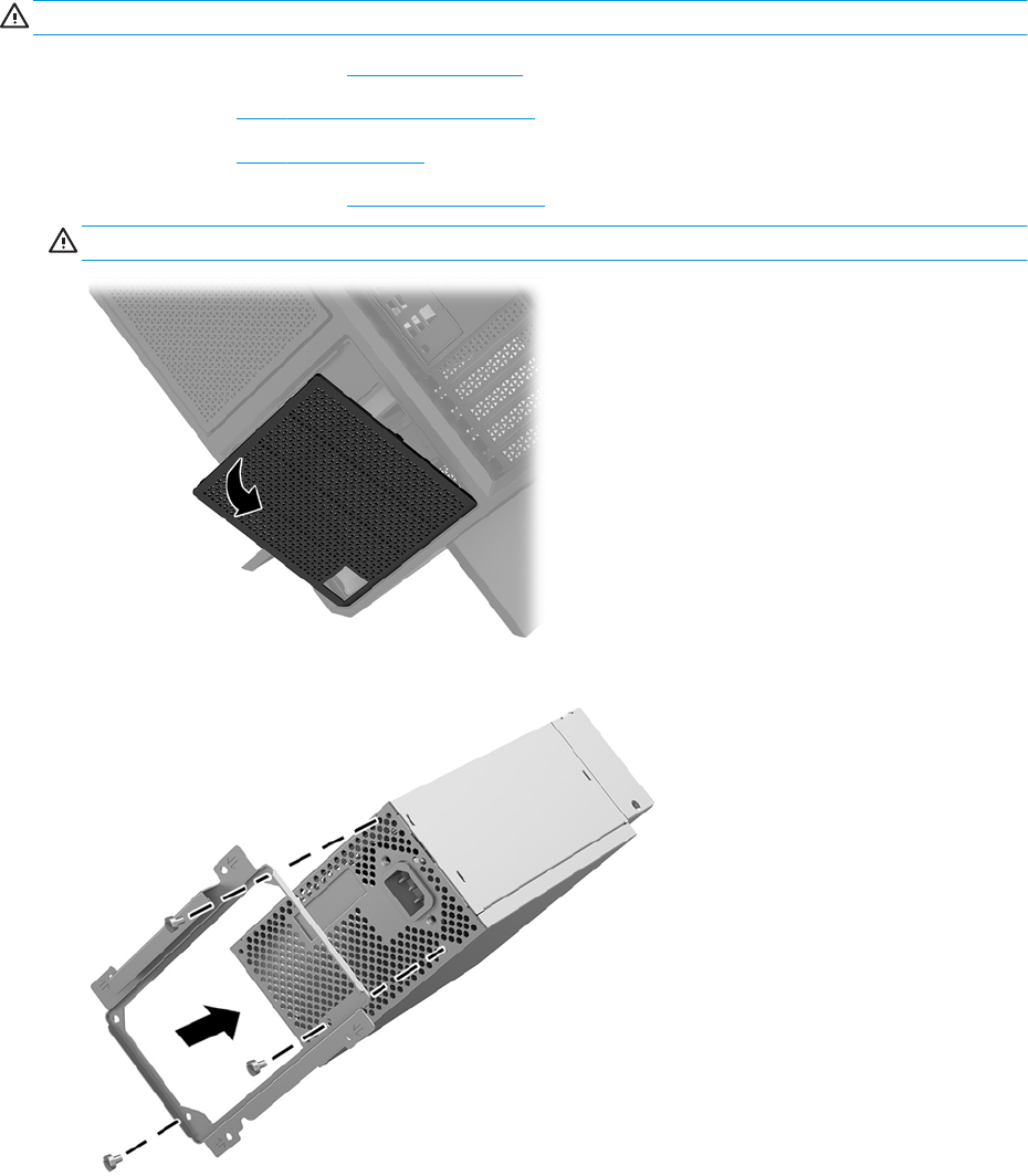 4. 使用工具箱中的安全工具(第 9 页的拿取工具箱)拆除位于机箱后面的电源盖。