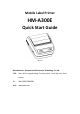 Mobile Label Printer HM-A300E Quick Start Guide Rev.1.0 Manufacturer : Xiamen Hanin Electronic Technology Co.,Ltd. ADD: Room 305A, Angye Building, Pioneering Park, Torch High-tech, Zone, Xiamen Tel: +86-(0)592-5885991 Web: www.hprt.
