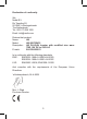 VAATIMUSTENMUKAISUUSVAKUUTUS Me, Nedis B.V. De Tweeling 28 5215MC ’s-Hertogenbosch Alankomaat Puh: 0031 73 599 1055 Sähköposti: info@nedis.com Vakuutamme, että tuote: Nimi: HQ Malli: HQ-INV75W/12 Kuvaus: HQ PLUG-IN vaihtosuuntaaja siniaallolla 75W, 12V DC - 230V AC E-merkki: E4-10R-020951 Täyttää seuraavat standardit: EMC: EN55022 :1998+A1:2000+A2:2003, EN55024 :1998+A1:2001+A2:2003 LVD: EN60950-1:2006, EN61558-1:2005 Täyttää EU-direktiivien vaatimukset. ‘s-Hertogenbosch, 24.4.2008 Mrs. J.