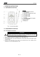 HT-14N 4. OPERATING INSTRUCTIONS 4.1. INSTRUMENT DESCRIPTION LEGEND: 1. Case with protective holster. 2. Analog display. 3. Resistance zero adjustment knob. 4. Resistance range. 5. AC voltage range. 6. DC Current range. 7. Pin cover. 8. Attachable test leads with probes. 9. DC voltage range. 10. Rotary switch. 11. Battery test. Fig. 1: Instrument description. 4.2. MEASUREMENT DESCRIPTION 4.2.1. DC Voltage measurement WARNING Maximum input for DC voltage is 500V .