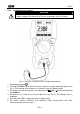 HT327 4.3.4. AC Current measurement CAUTION The maximum input for DC current is 10A. Do not attempt to measure higher currents to avoid electrical shocks or damages to the instrument. Fig. 5: Using the instrument for AC Current measurement 1. Power off the circuit under test 2. Selecting the position . By pressing R/SEL key to select AC measurement. The “ ” symbol is shown at display 3. Insert the test leads into the jacks, the red plug into A jack and black plug into COM jack 4.