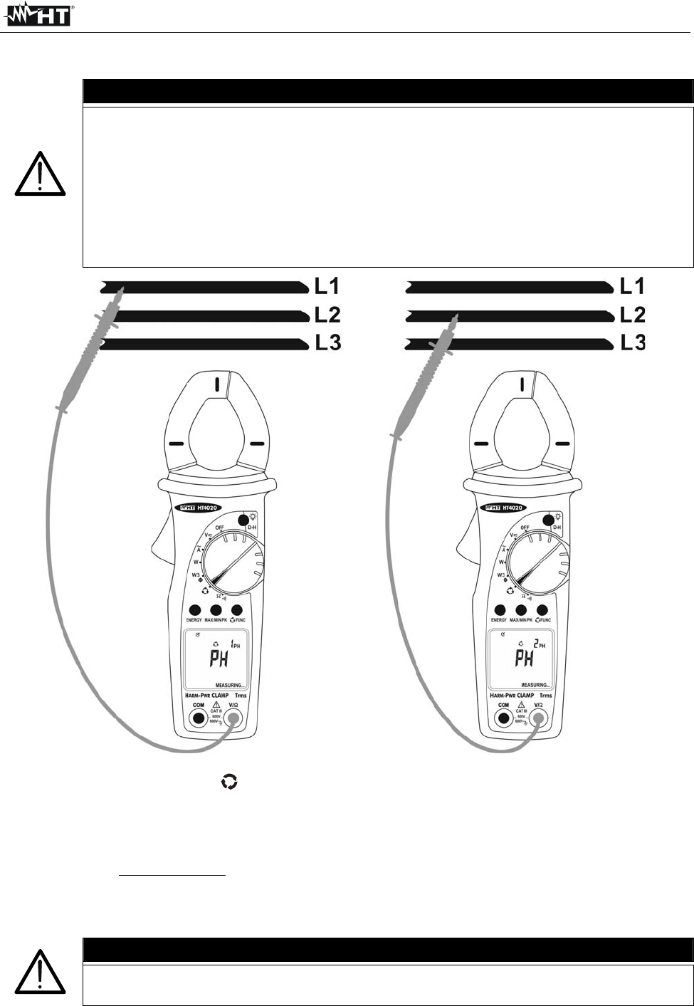 3. Connecter l'embout rouge à la phase L1 (voir Fig. 13 – partie gauche). Autrement,