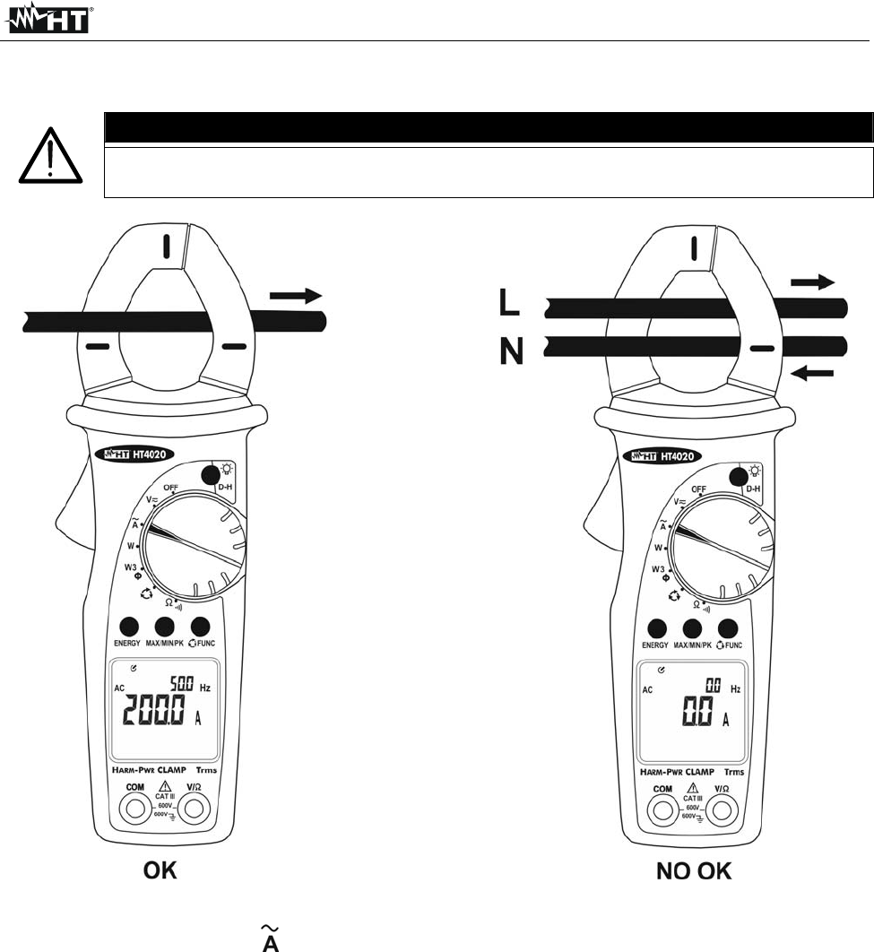 2. Abra el maxilar y engatille un único cable al centro del toroidal (ver § 4.1.2 y Fig. 8). El