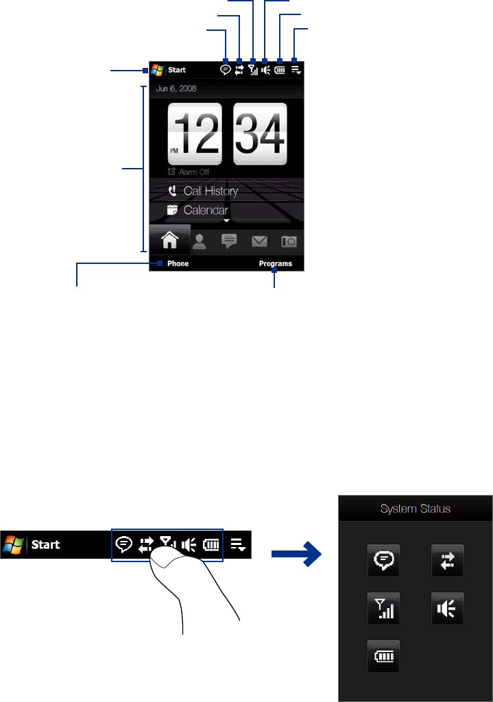 Tip The System Status screen can be disabled in TouchFLO settings. See “Settings on Your Device” in Chapter 13 for