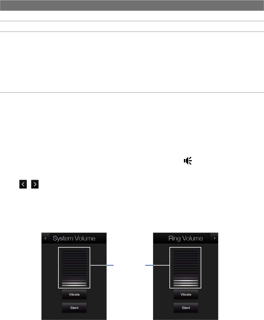 2. To switch between the Ring Volume and System Volume screens, touch the