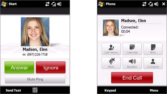 When you receive a phone call, a message will appear, giving you the option to either answer or ignore the
