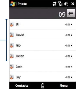which is associated with [a, b, and c] on the Phone keypad, contact names such as the following will be